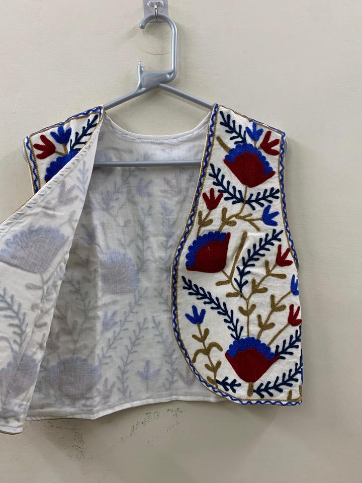 Soft Cotton Suzani Floral Short Vest Vintage Jacket Embroidery Coat Sleeveless Vest Suzani Vest Embroidery Summer Waistcoat