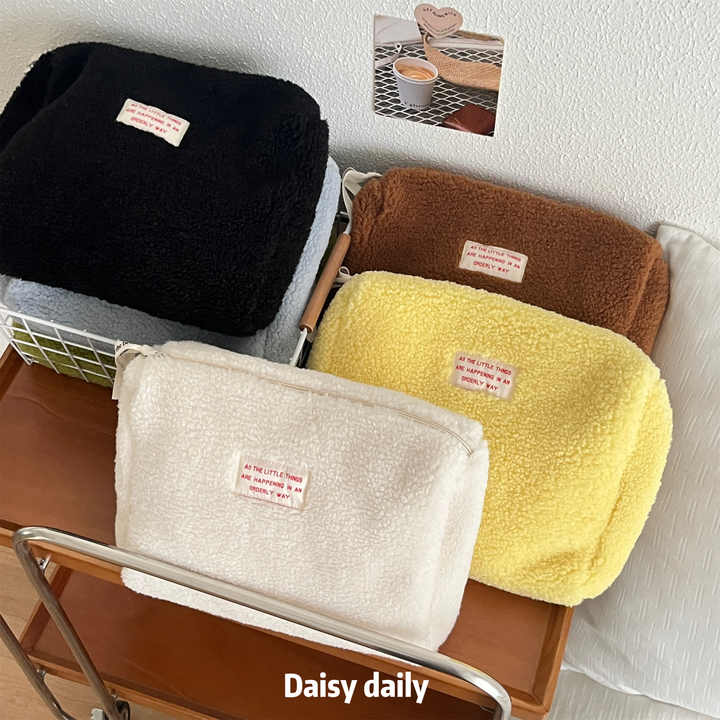 Soft Cute Teddy Lamb's Wool Cosmetic Bag Portable Makeup Bags Custom LOGO Label Stitching Toiletry Bag for Women Men Travel Gift
