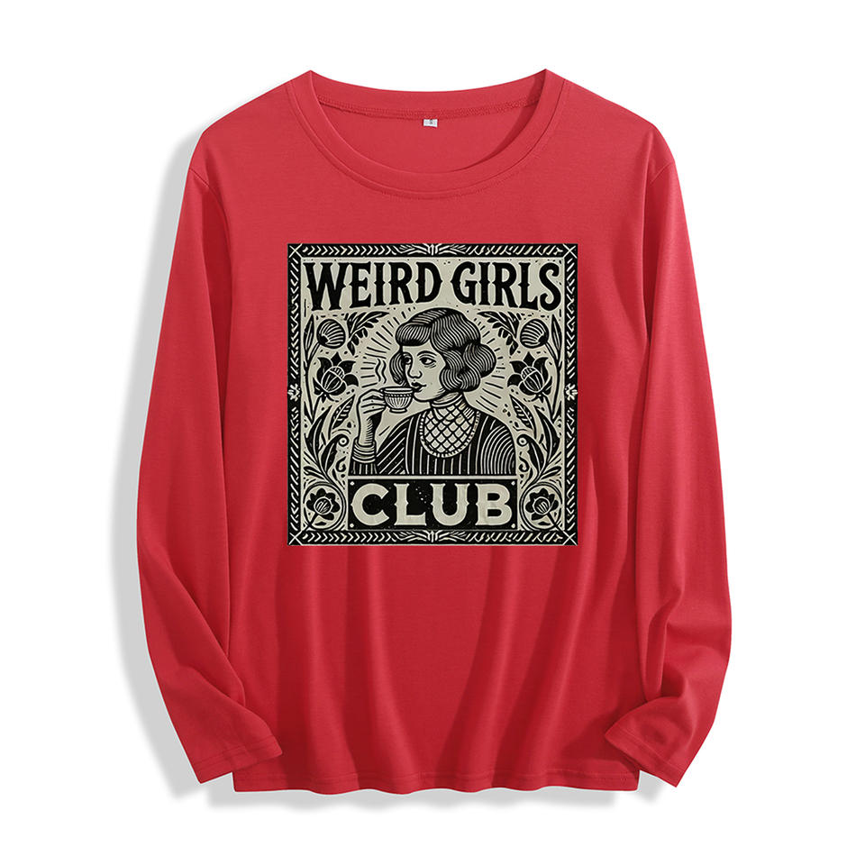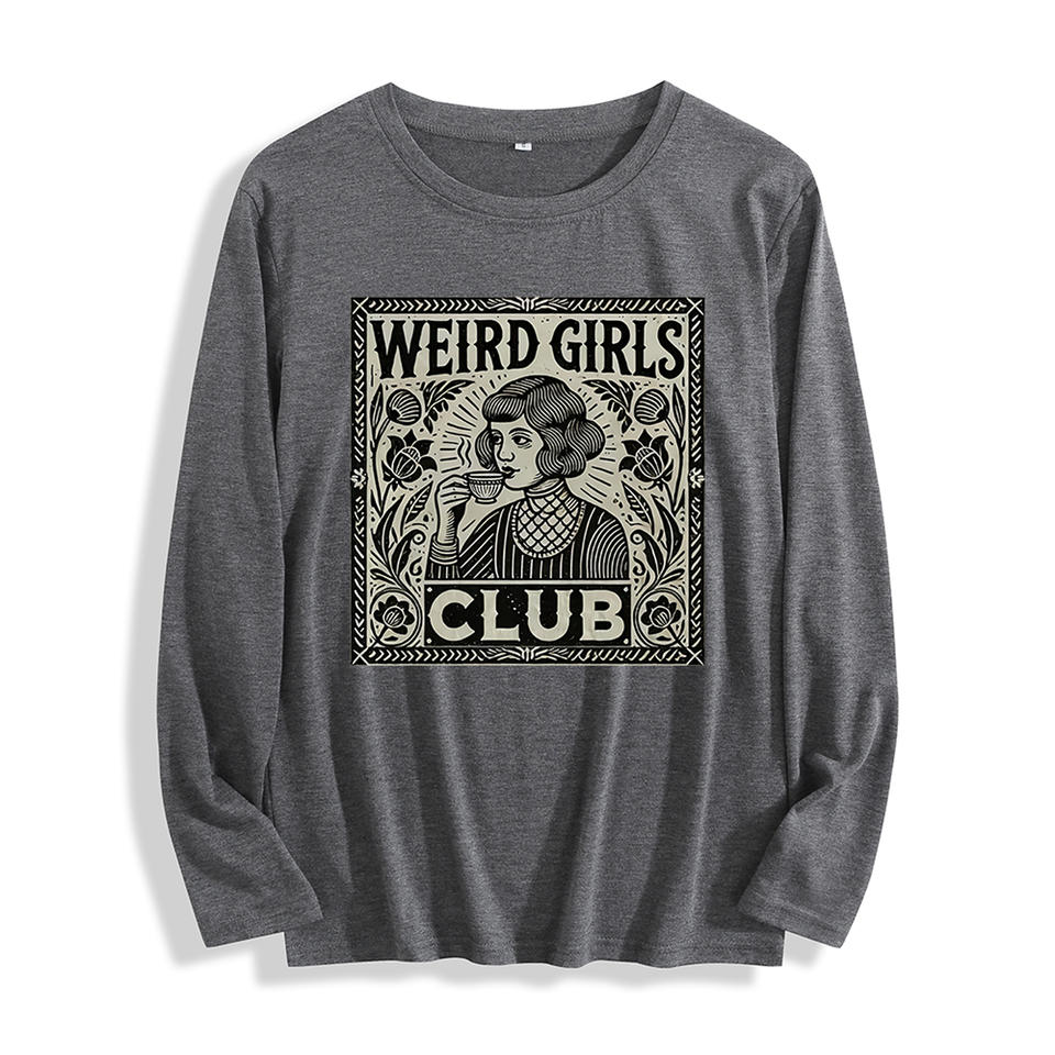 Soft Fabric "Weird Girls Club Vintage Graphic" Long Sleeve T Shirt Multi Colors
