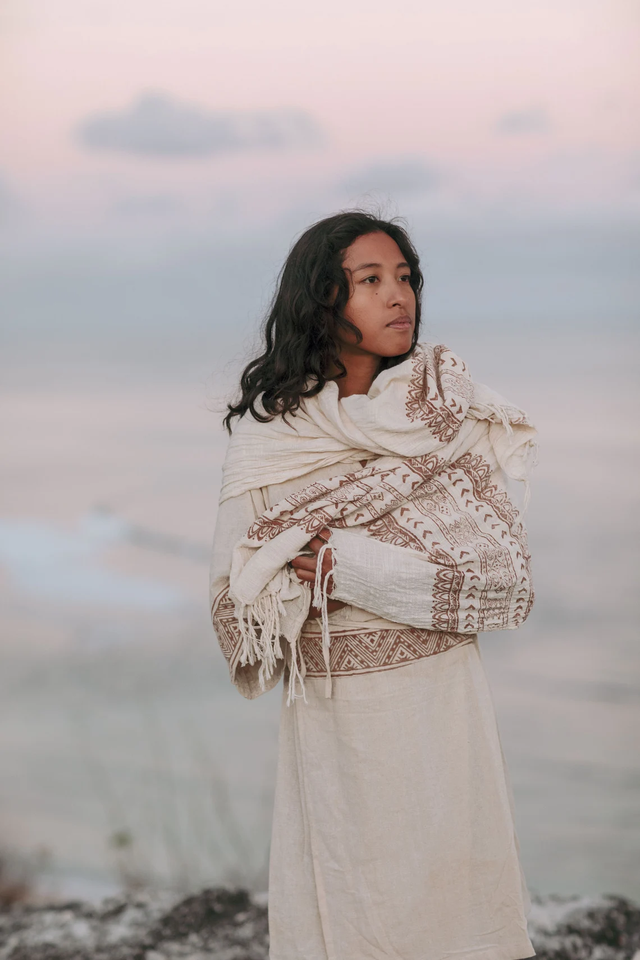 Soft Khadi Cotton Handloom Tribal Scarf Handblock Printed Long Stole Sarong Pareo Lungi in White