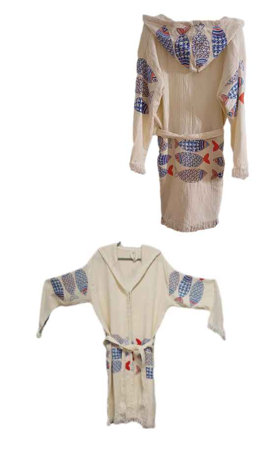 Soft Muslin Hooded Bathrobe Colourful Printing Women Men Kids Beach Towel Spa Bathroom Home Hotel Quick Drying