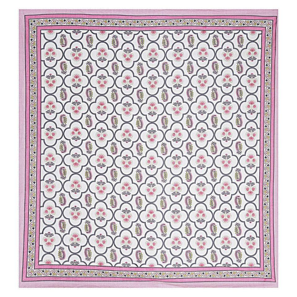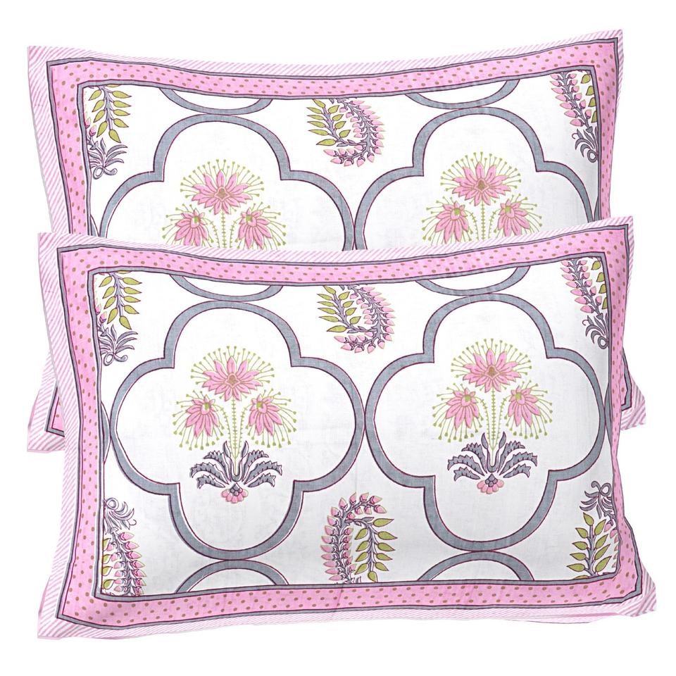 Soft Pink Floral & Animal Arch Jaipuri Hand Block Printed Cotton 3-Piece Double Bedsheet Set with Elegant Border Pillow Covers