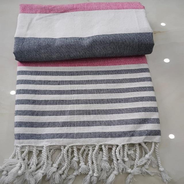 Soft Quick-Dry Lightweight Eco-friendly Recycled Cotton Striped Turkish Woven Beach Towel Absorbent Dry Clean Pool Travel