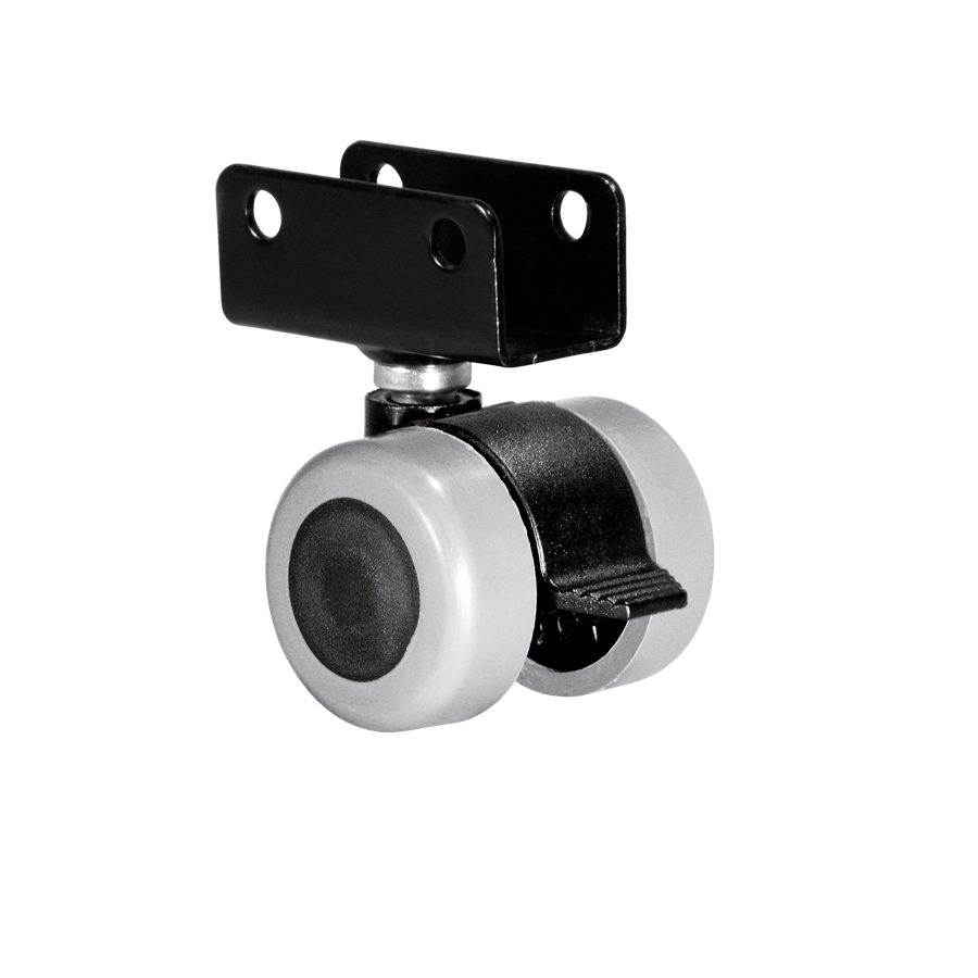 Soft Running Double Wheel Furniture Casters Ø 35 mm with Gray Brake and 16 mm Plate Shoe