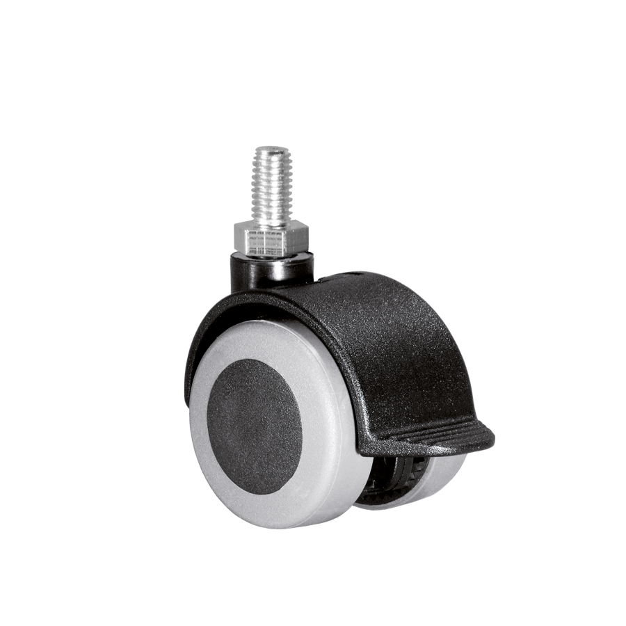 Soft Running Double Wheel Furniture Casters Ø 40 mm with Gray Brake M8x15 mm Threaded Pin