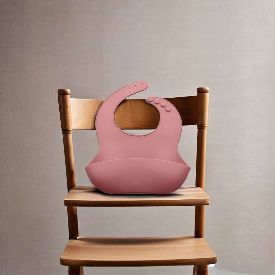 Soft Silicone Bib with Cute Print Snap Button Closure Washable and Custom Logo for Toddlers' Feeding