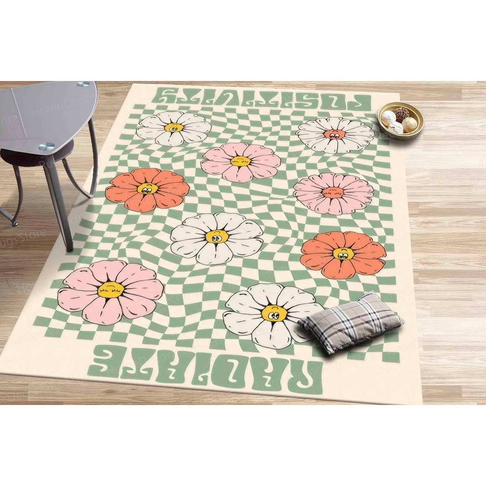Soft Tones Printed Rug - Modern Floral Chenille Bedroom Area Rug,Luxury Velvet Rug