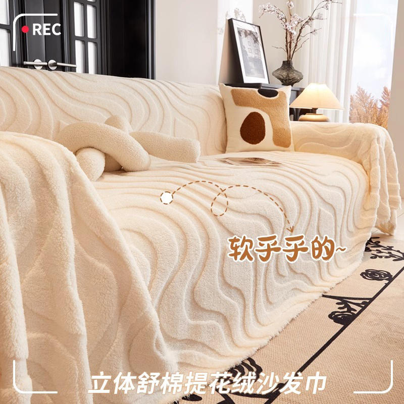 Soft Wagging Plush Sofa Cover Full Coverage Non Slip Modular Sofa Pad Type Plain Dyed Shu Mian Rong Material