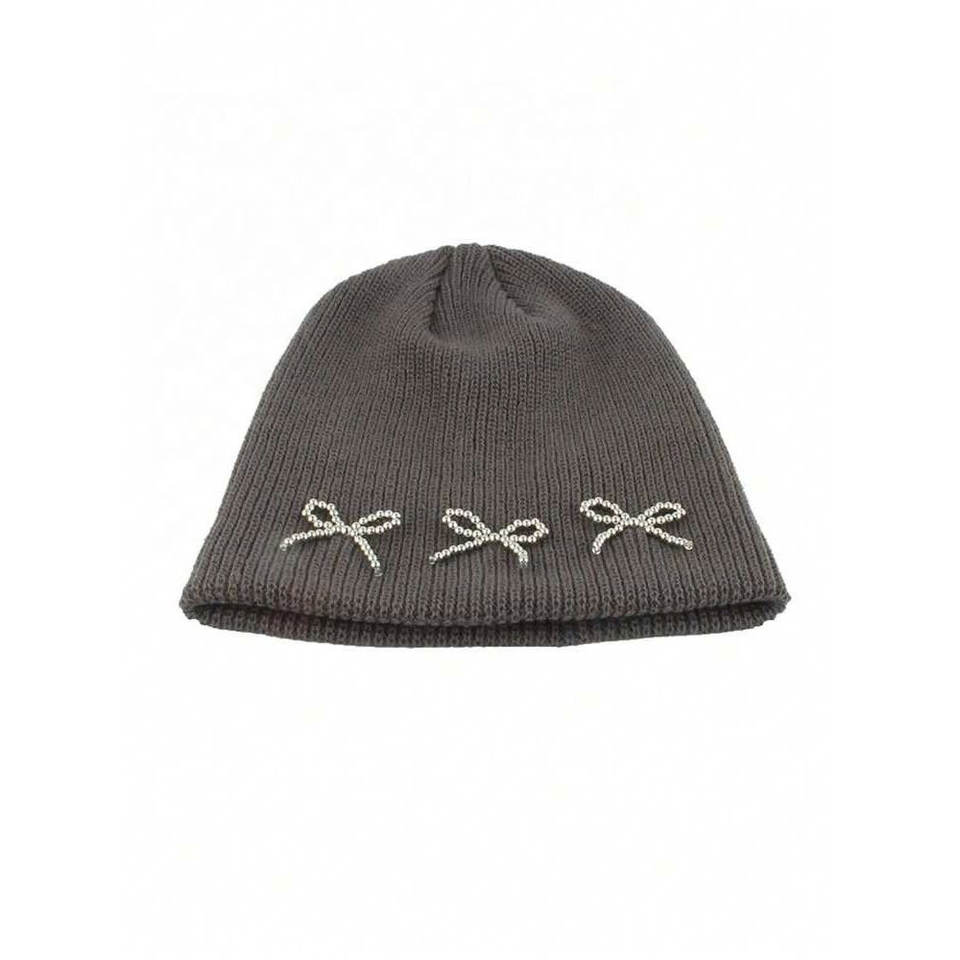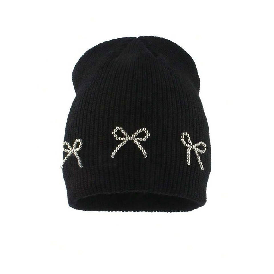 Soft Warm Wool Blend Plaid 3D Embroidery Rhinestone Decor Slouchy Knit Beanie Hat Elegant Sparkle Crystal Cozy Winter