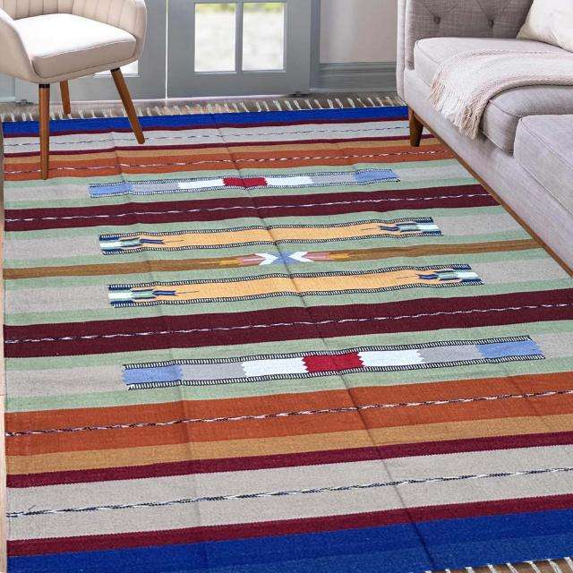 Soft and Durable Handloom Cotton Dhurrie Kilim Style Area Rug Set Long-Term Use for Busy Spaces
