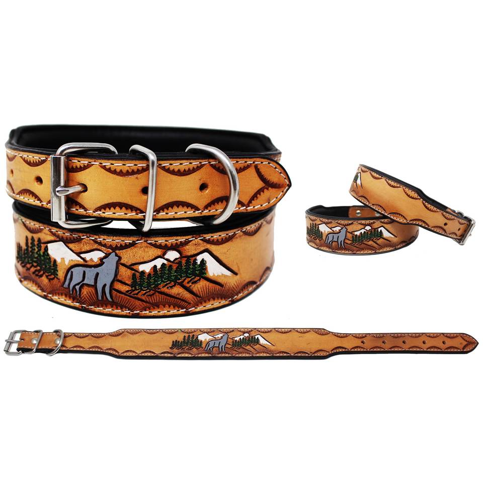 Softly Padded High Quality Leather Dog Collar Hand Tooled Scenario Design Pet Collar Adjustable Dog Uses Low Prices
