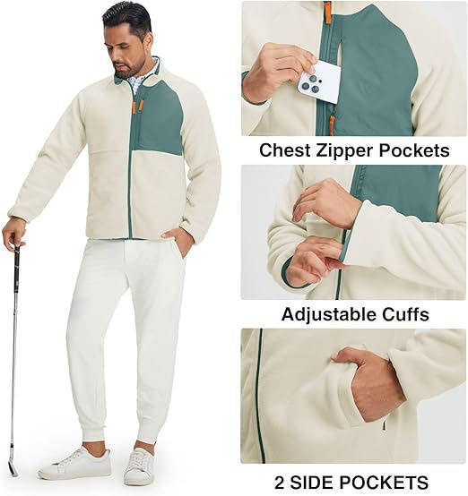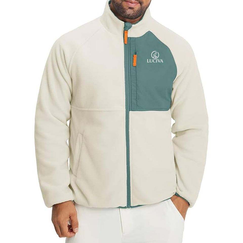 Softshell jacket Men's jacket Premium Men’s Cream Sherpa Fleece Jacket with Contrast Teal Utility Chest Pocket and Vibrant