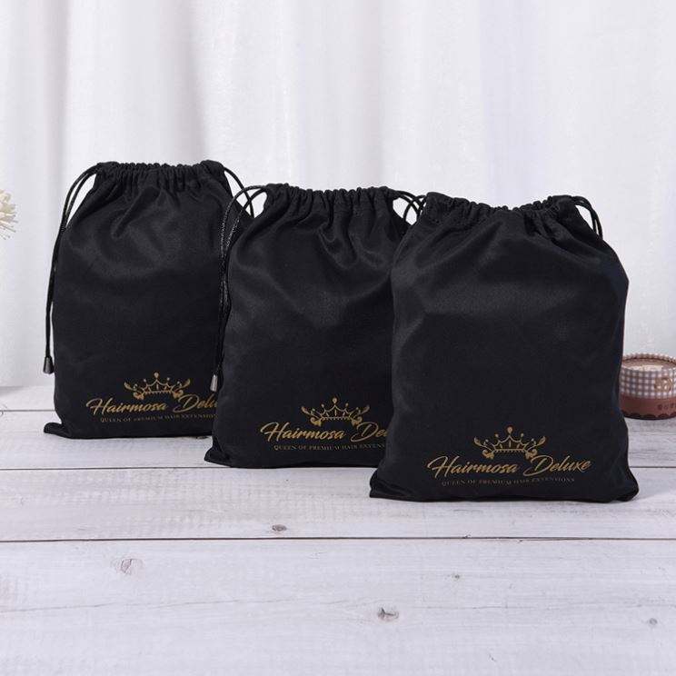 Softy Luxury Recyclable Silk Satin Drawstring Bags Wig Handbag Dance Shoes Custom Logo for Gift Storage Dust Packaging for Wigs