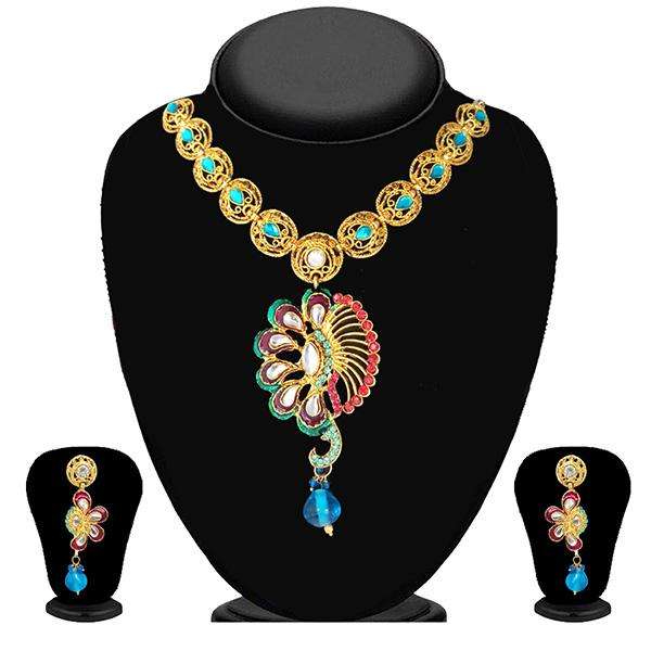 Soha Fashion Fine Jewelry Set Blue Meenakari Gold Plated Necklace-1100909