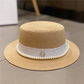 Sohyangpung Women's Summer Pearl Straw Fedora Famous Beach Vacation Hat with Rashguard Brim Cover up for Swimsuit