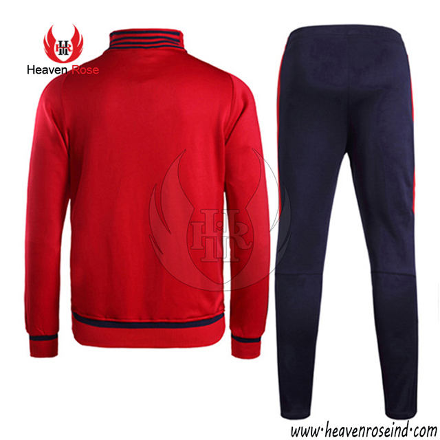 Soild Colors Cute Couple Red & Navy Contrast Zipper Nylon Tracksuit