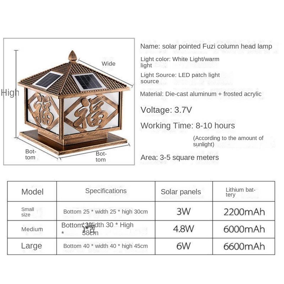 Solar LED Column Headlamp for Outdoor Garden Blessing Gate Post Lamp with IP65 Rating for Villa Garden & Gate Post Lighting