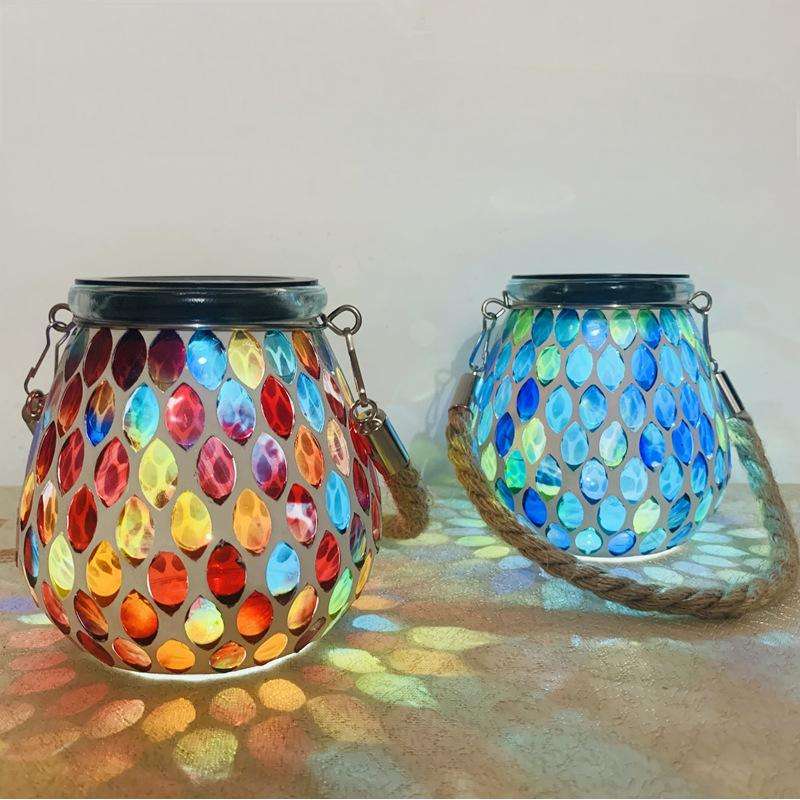 Solar Lights Outdoor Hanging Lanterns Rechargeable Waterproof Table Lamp Mosaic Night Light for Garden Patio Party Yard