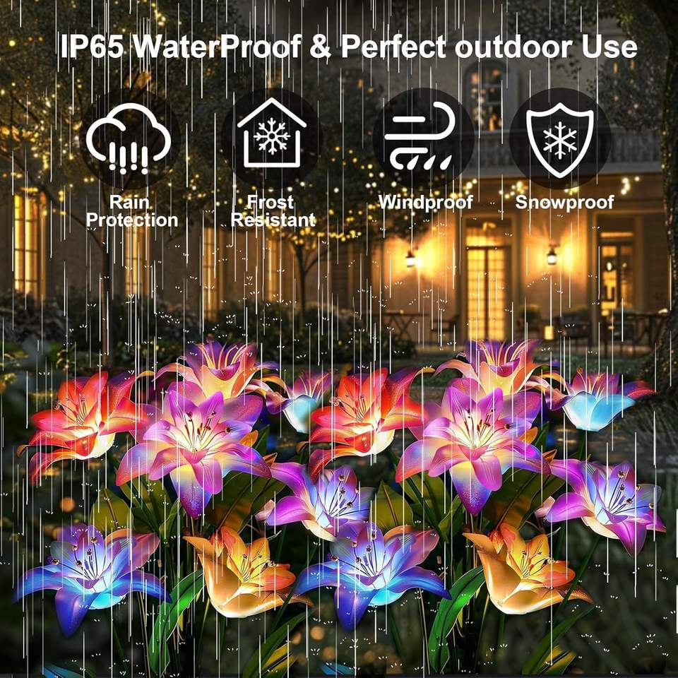 Solar Lily Lights Garden Light Flowers Outdoor Waterproof Solar Stake Lights for Back Yard Pathway Patio
