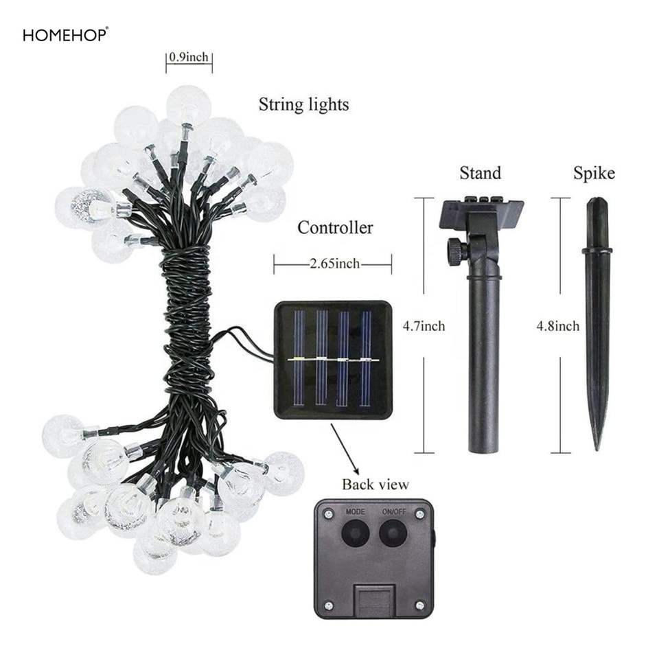 HOMEHOP Solar LED Crystal Ball String Light Outdoor Waterproof Rechargeable Decorative Lamp for Home Garden Balcony