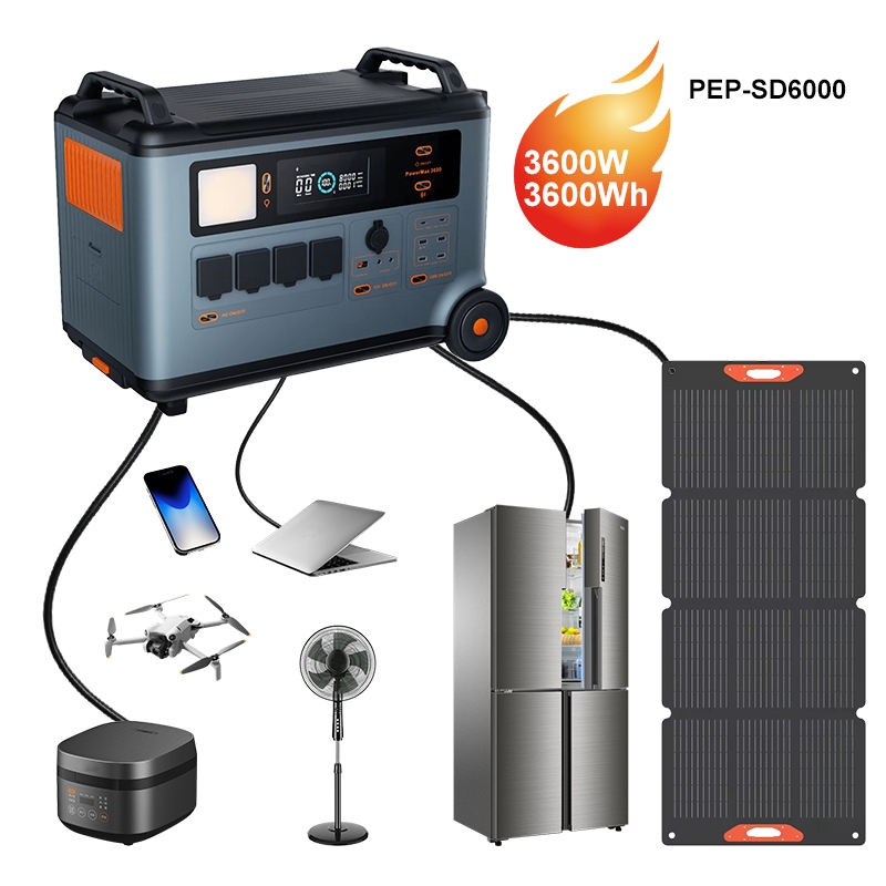 Solar Powered 3600Wh LiFePO4 Portable Generator 3600W with Car/USB Charging and Pure Sine Wave for Emergency Supply