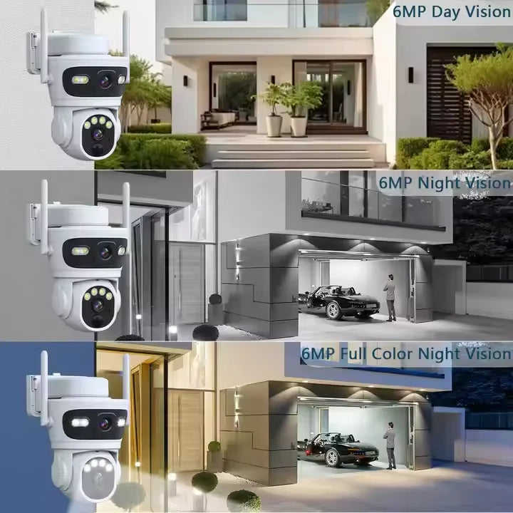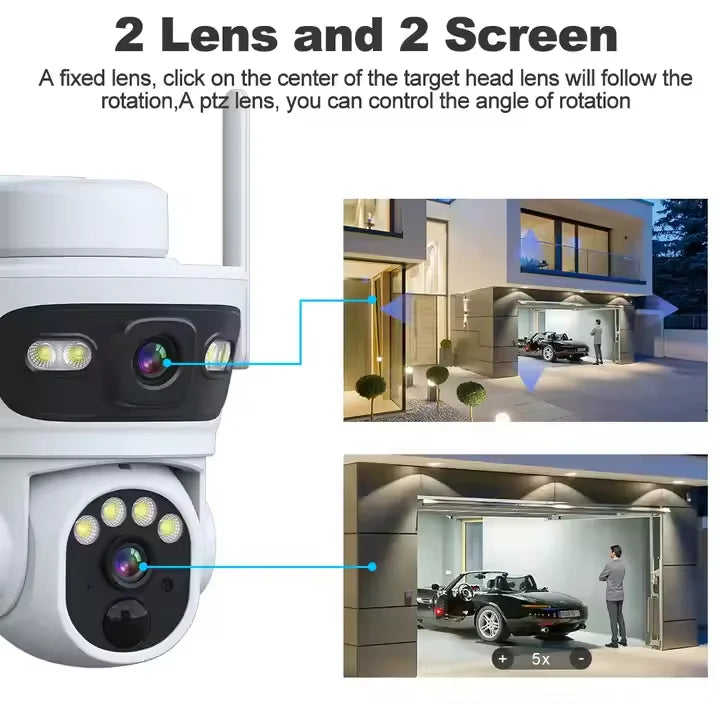 Solar Powered 6MP Full Color Night Vision Network Security Camera 2-Lens 5x Zoom Automatic Tracking Motion Detection Two-Way