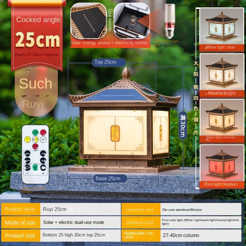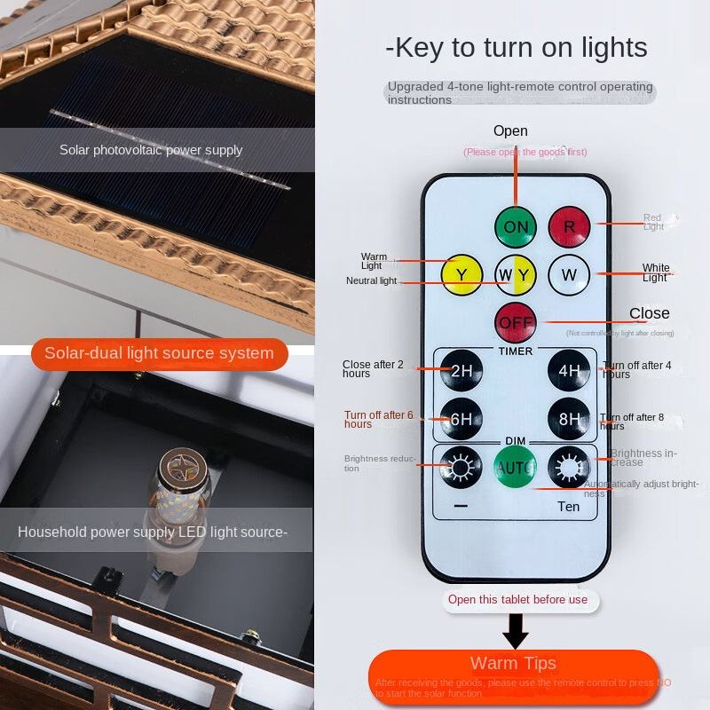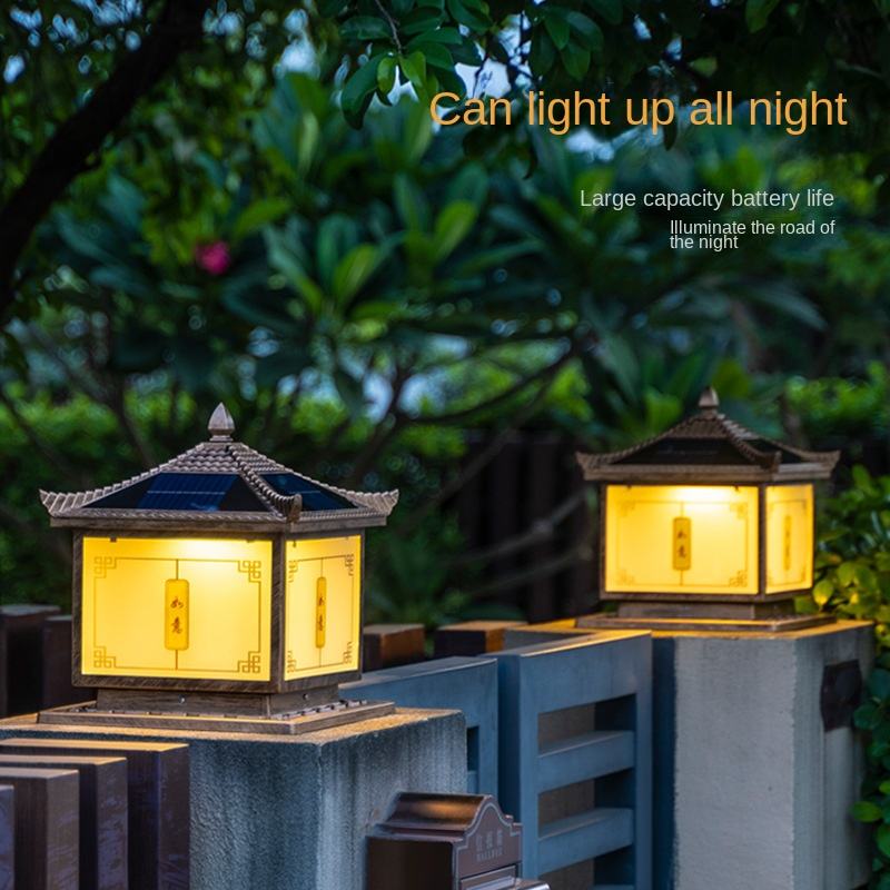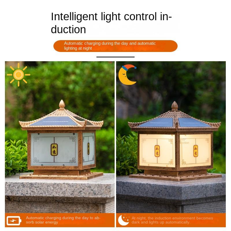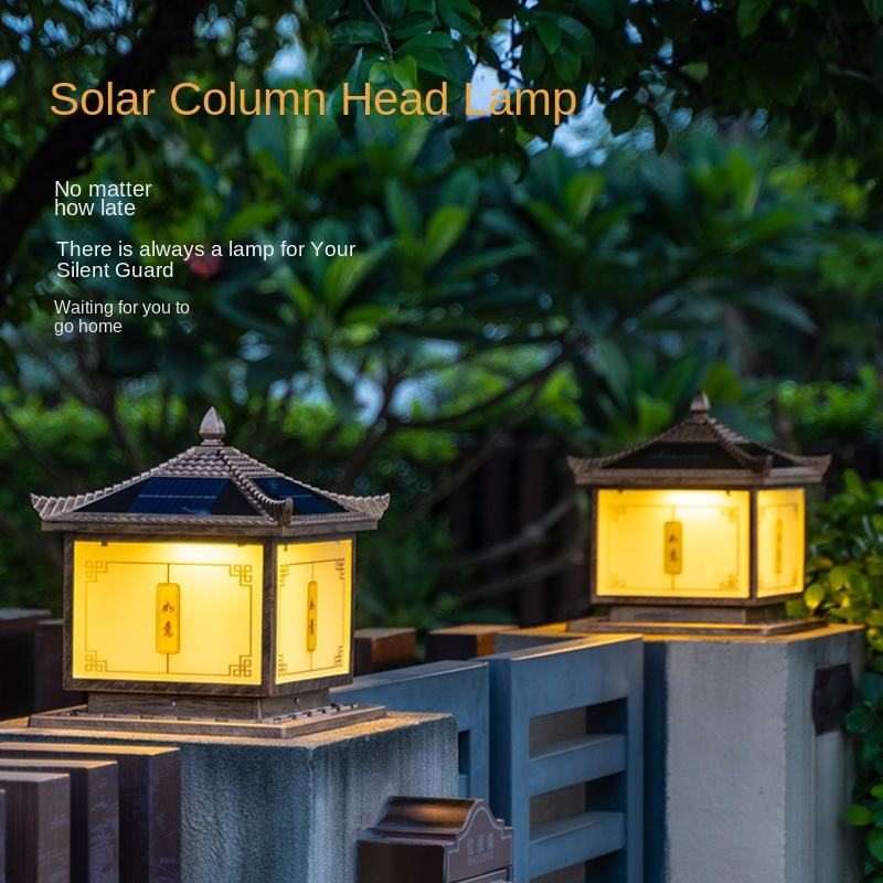 Solar Powered LED Garden Lamp Waterproof Column Head Light for Outdoor Wall Fence & Landscape for Gate Decoration