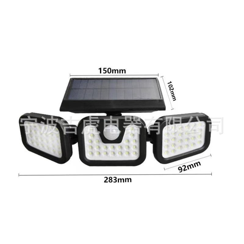 Solar Powered LED Three Head Wall Lamp 283mm With Motion Sensor Outdoor Waterproof Street Light
