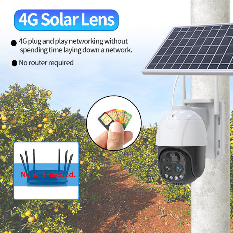 Solar Powered PTZ Network Camera 4MP 2304x1296 HD Outdoor Waterproof Full Color Night Vision With Alarm Function