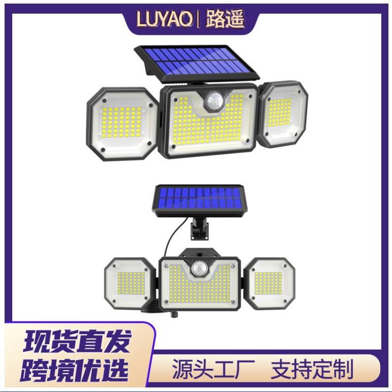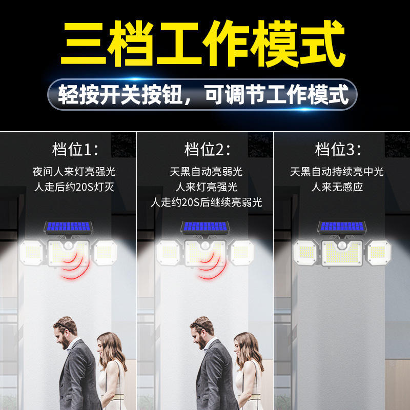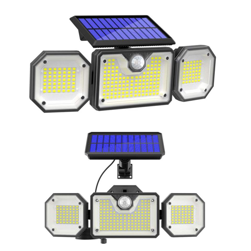 Solar Powered Three Head LED Flood Light 320mm Waterproof Human Body Sensor Outdoor Wall Lamp