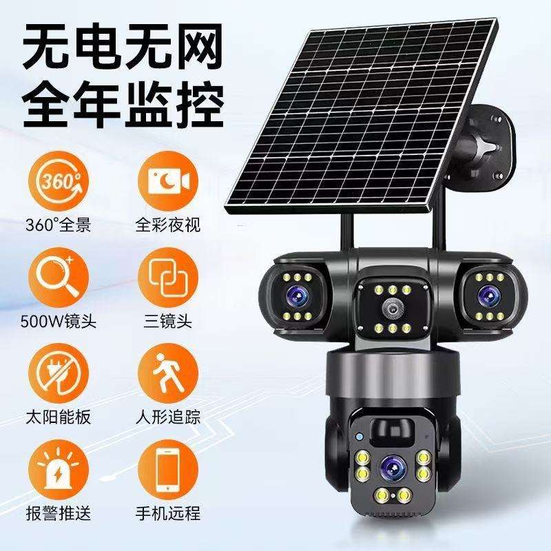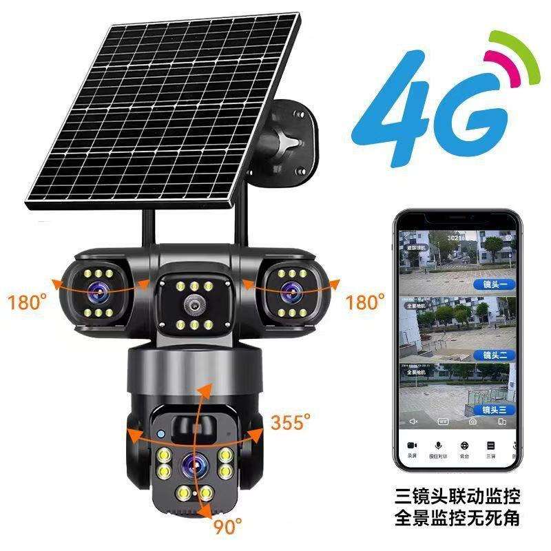 Solar Powered Triple Lens 4G Camera Outdoor Waterproof Night Vision Mobile Remote Monitoring