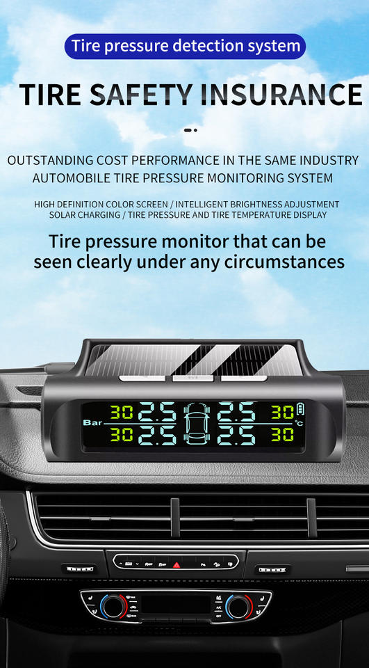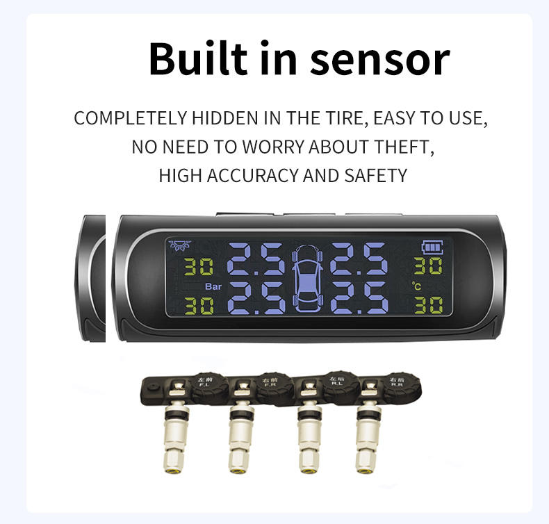 Solar Powered Wireless Tire Pressure Monitor System Automobile Tire Pressure Monitoring with 4 Internal Sensors
