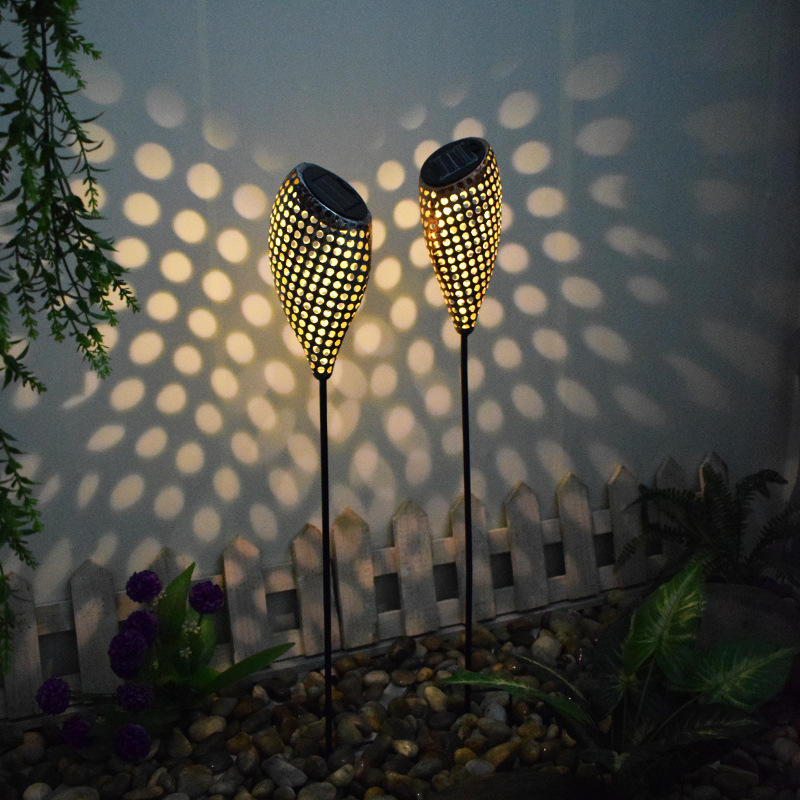 Solar-Powered Wrought Iron Landscape Light Round Hollow Design Outdoor Courtyard Garden Decorative Light DC Supply
