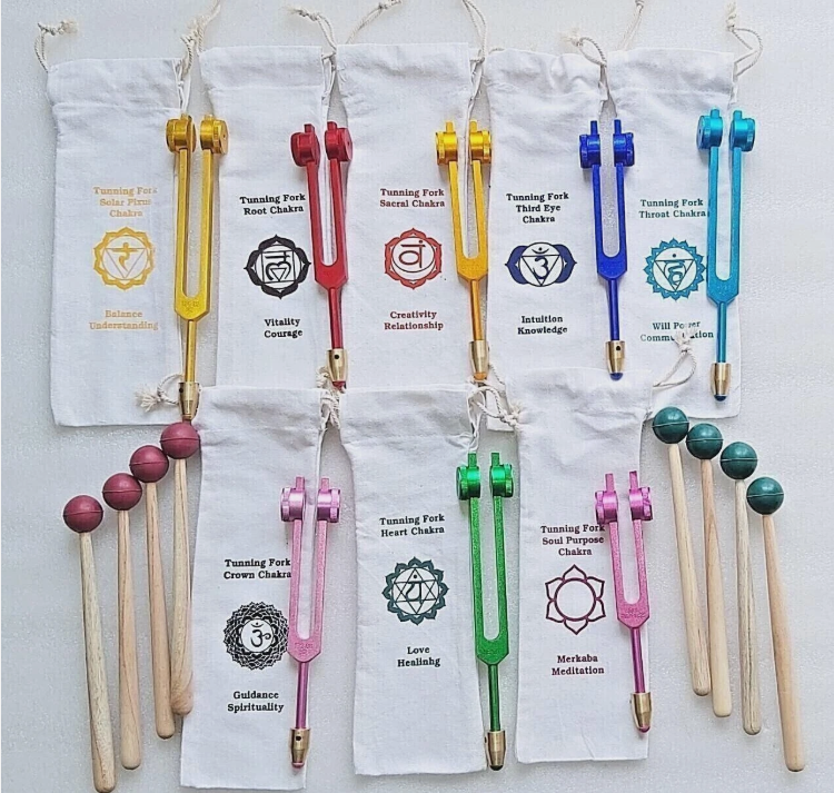 Solfeggio Tuning Forks Weighted Set of 9 with Color Removable Balls for Healing...