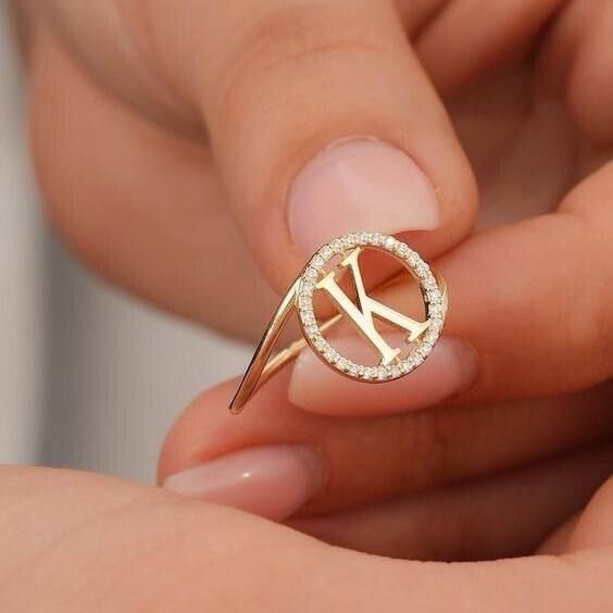 Solid 10K Yellow Gold IGI Certified Classic Halo Wedding Ring Personalized Initial Letter Lab Grown Diamonds Pave Anniversary