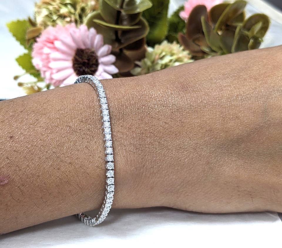 Solid 14K White Gold Round Link Bracelet, 3.20 Ct Round Cut Lab grown Diamond Tennis Bracelet, Wedding Gift For Women's