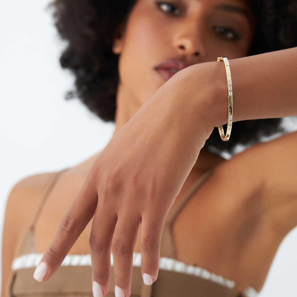 Solid 14k Gold 1.01ctw Emerald Cut Bezel Setting Lab Grown Diamond Bracelet Women Vintage Wedding Gift Bangle Fine Jewelry