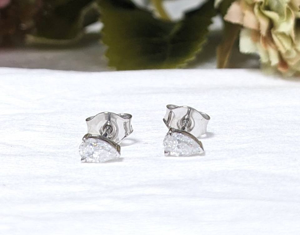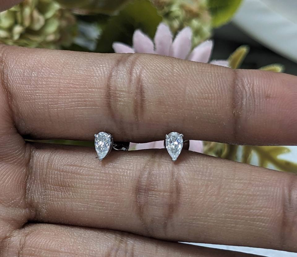 Solid 14k White Gold Stud Earrings For Women's, 0.60 Ct Pear Cut Push Back earrings, Fine Jewelry for Women, Anniversary Gift