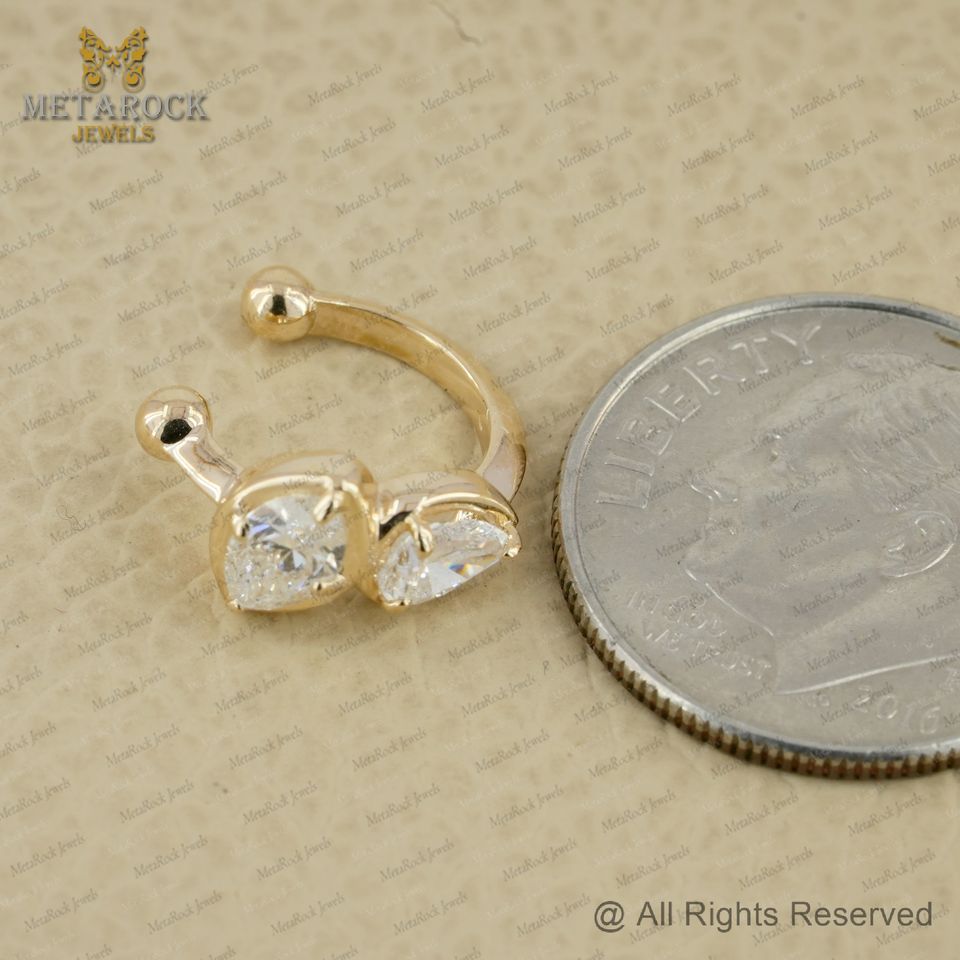 Solid 14k Yellow Gold No Piercing Ear Cuff Pave Diamond Cartilage Earring Minimalist Ear Cuff Conch Ear Cuff Earrings Gold Diamo