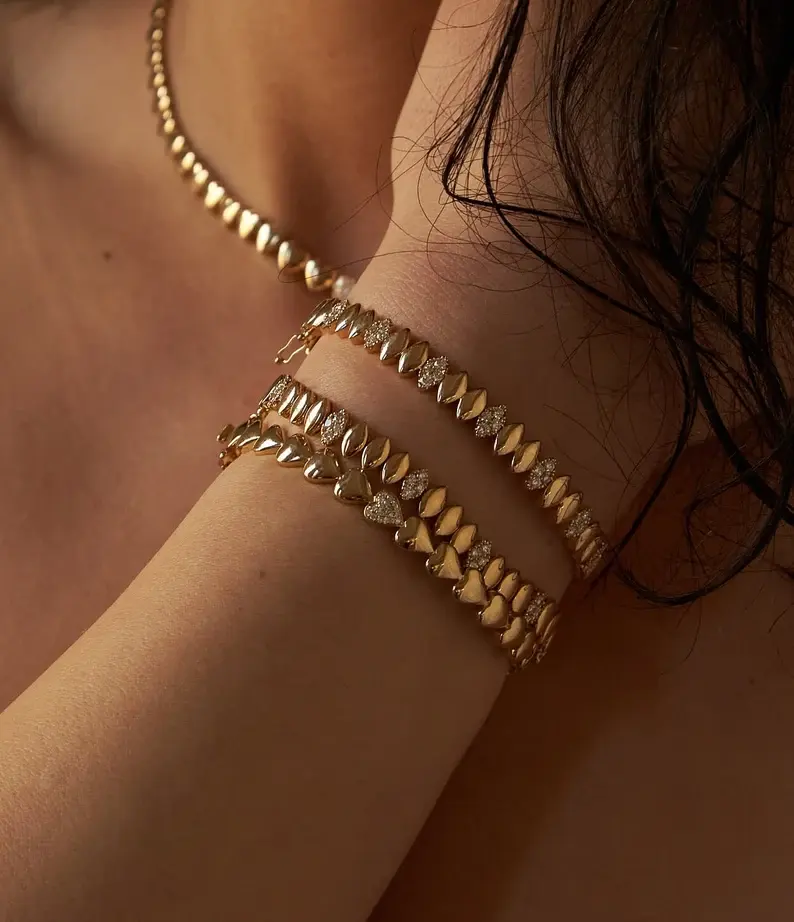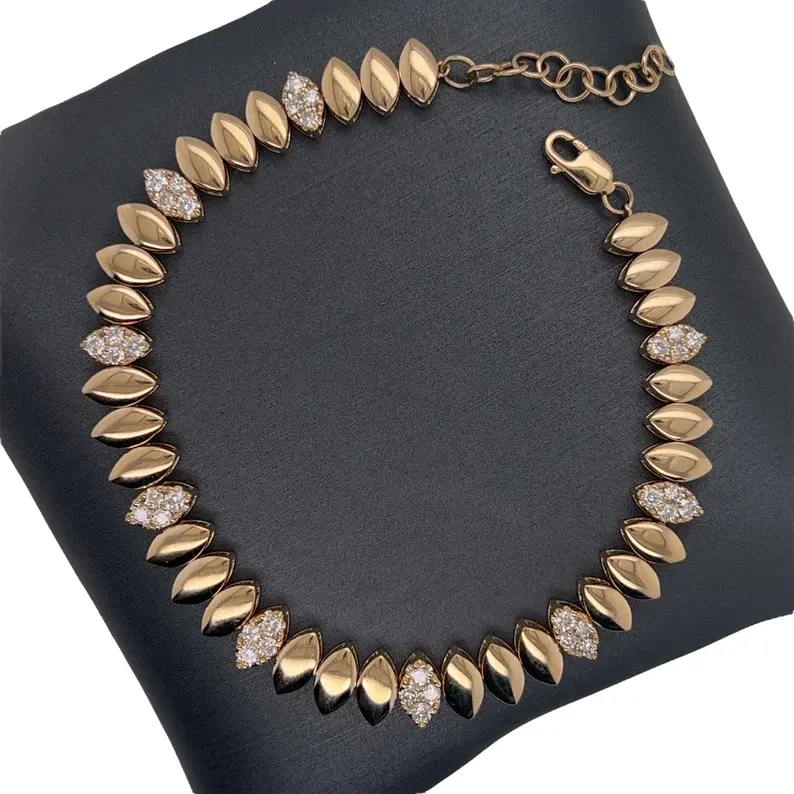 Solid 14kt Yellow Gold Vintage Style Chain Bracelet Soft White Diamond Pyramid Fashionable Zinc Alloy Statement Piece for Women