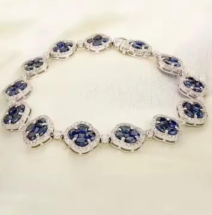 Solid 18K White Gold Blue Sapphire Diamond Bracelet September Birthstone Bracelet Real Rose Gold Natural Blue Sapphire Gold