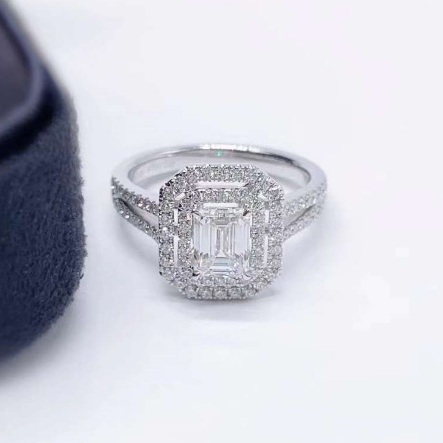 Solid 18K White Gold Emerald Cut Moissanite Diamond Ring Engagement Ring for Good Gift