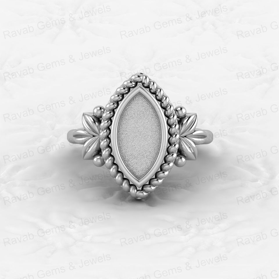 Solid 925 Silver 6x12mm Marquise With Leaf Bezel Cup Semi Mounting Resin & Ashes Work Jewelry Findings Components Blank Stone