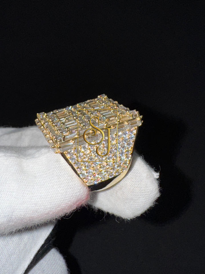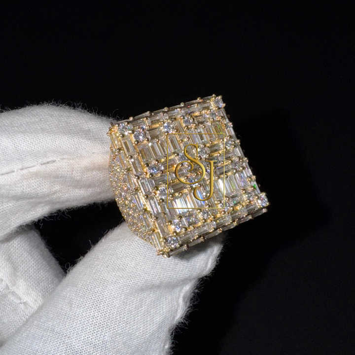 Solid 925 Silver Custom Championship Ring for Men VVS Moissanite Diamond Gold Plated Hip Hop Pinky Bling Iced Baguette Original