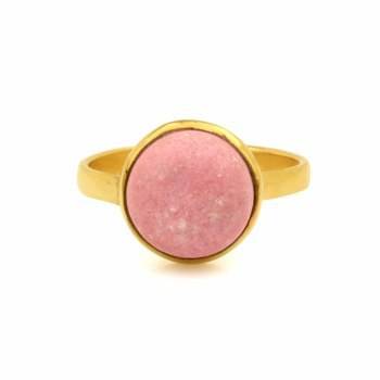 Product Name:Natural Pink Thulite Round Shape 925 Sterling Silver Gold Plated Ring