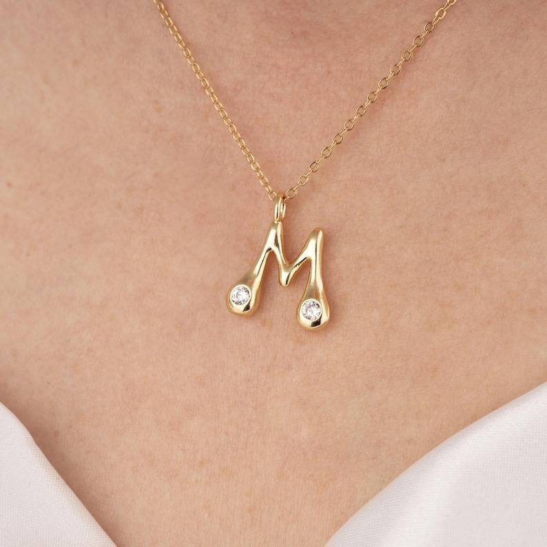 Solid 925 Sterling Silver 18K Yellow Gold Plated M Letter Alphabet CZ Charm Necklace Women Wife Best Gift Charm Jewelry Supply