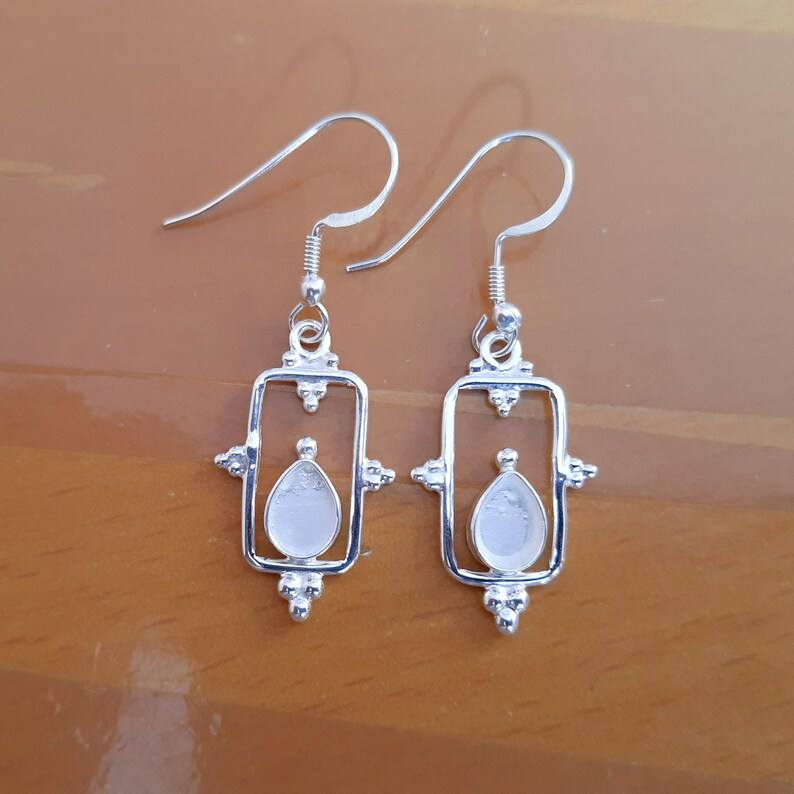 Solid 925 Sterling Silver Dangle Drop Earrings 6x8mm Design Blank Bezel Stone Setting with Breastmilk Keepsake Charm for Women