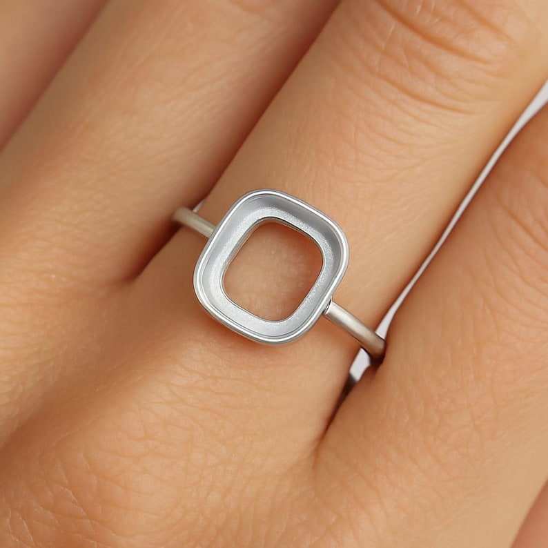 Solid 925 Sterling Silver 8mm Cushion Shape Blank Bezel Setting Ring For Women Stone Setting Wholesale Jewelry Manufacaters