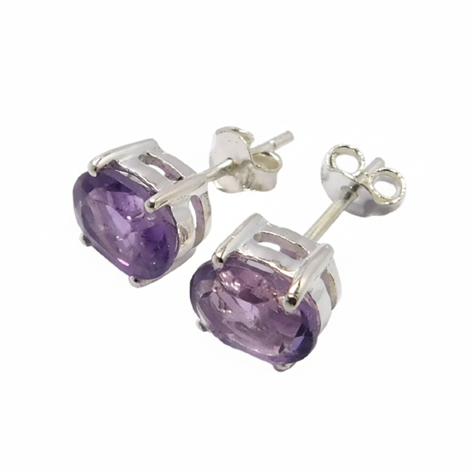 Solid 925 Sterling Silver Amethyst Gemstone Stud Earring Fancy Silver Jewelry for Women and Girls for Parties Anniversaries
