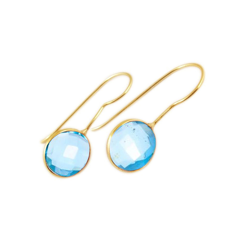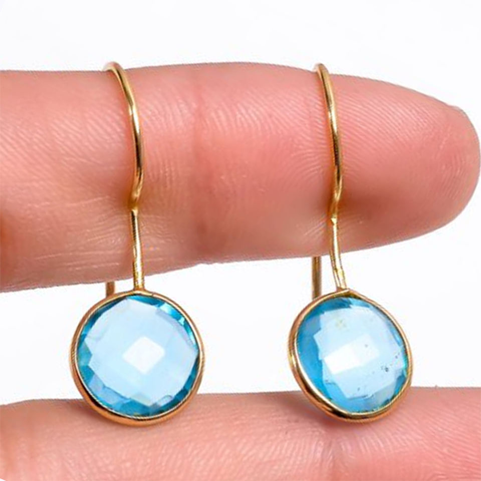 Solid 925 Sterling Silver Blue Topaz Round Shape Gemstone Dangle & Drop Earrings Jewelry